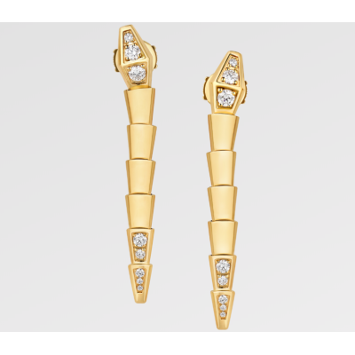 Serpenti Viper系列吊坠耳环,18K黄金材质,蛇首与蛇尾饰以密镶钻石