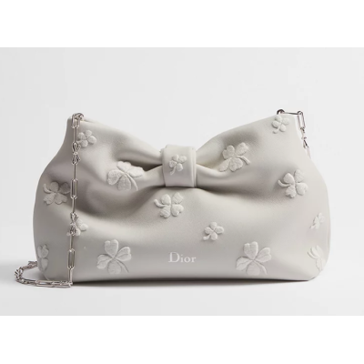 小号 Dior Bow 手袋 白色羊皮革 Dior Clover 图案刺绣
